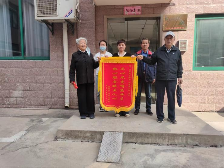 2023年10月18日上午,青年路公租房小區業主徐欽俠、周如亮夫婦將寫有“熱心服務暖至人心,盡心盡責情系業主”的錦旗送到小區物業辦公室,對該物業熱情周到細致的服務表示感謝。