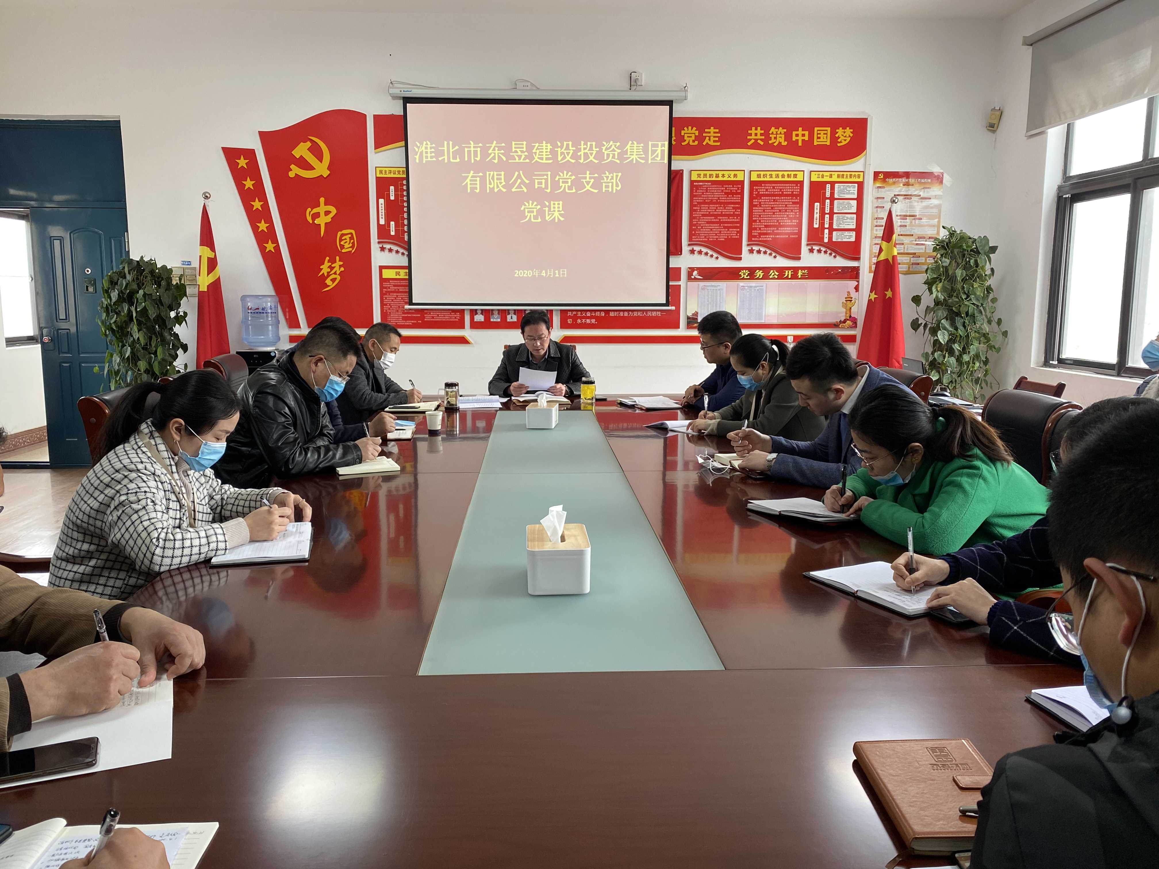 4月1日上午,淮北市東昱建設投資集團有限公司黨支部在三樓黨員活動室召開支部黨員大會。會議由黨支部書記李飛主持,支部全體黨員和入黨積極分子參加會議。